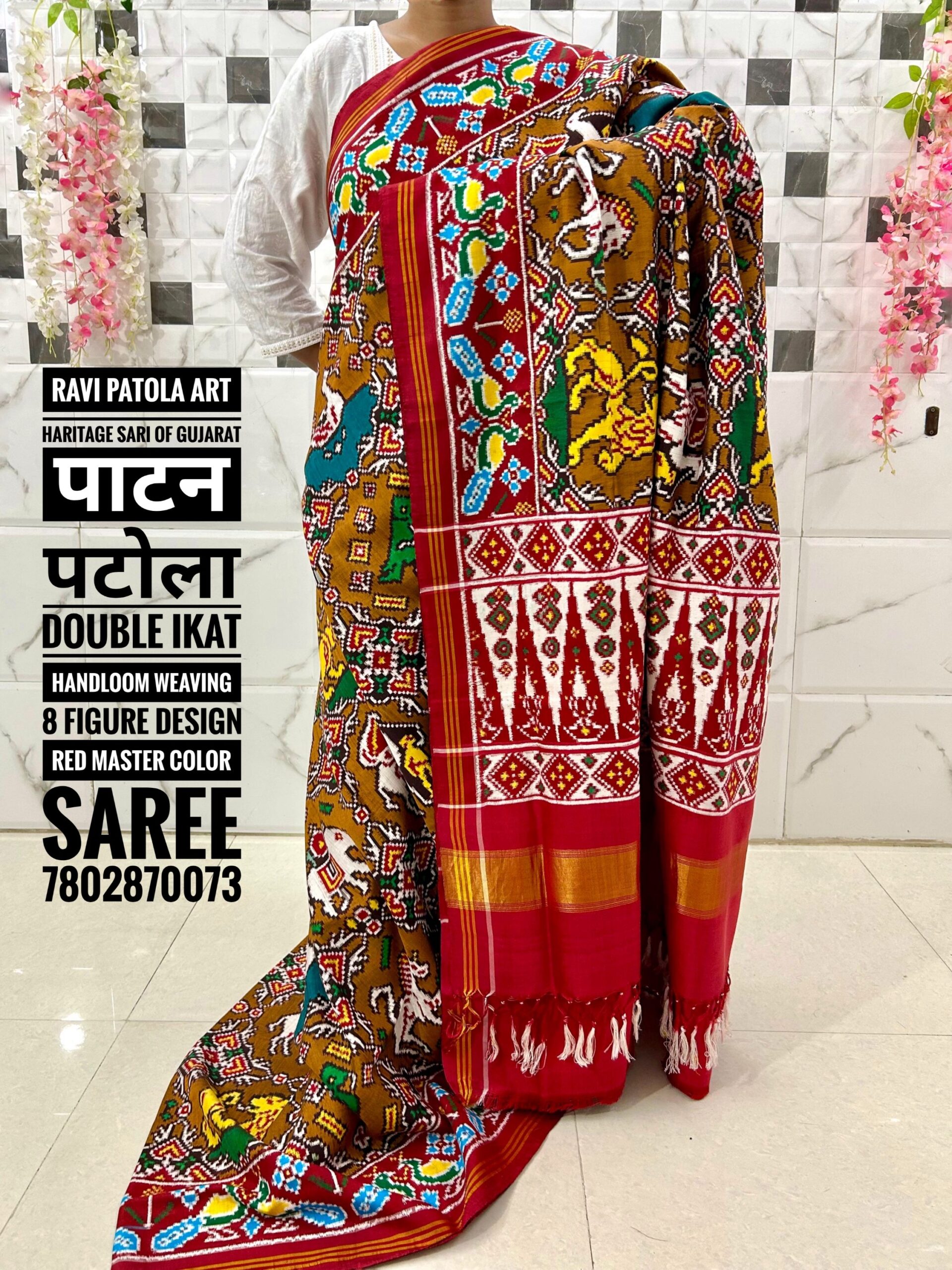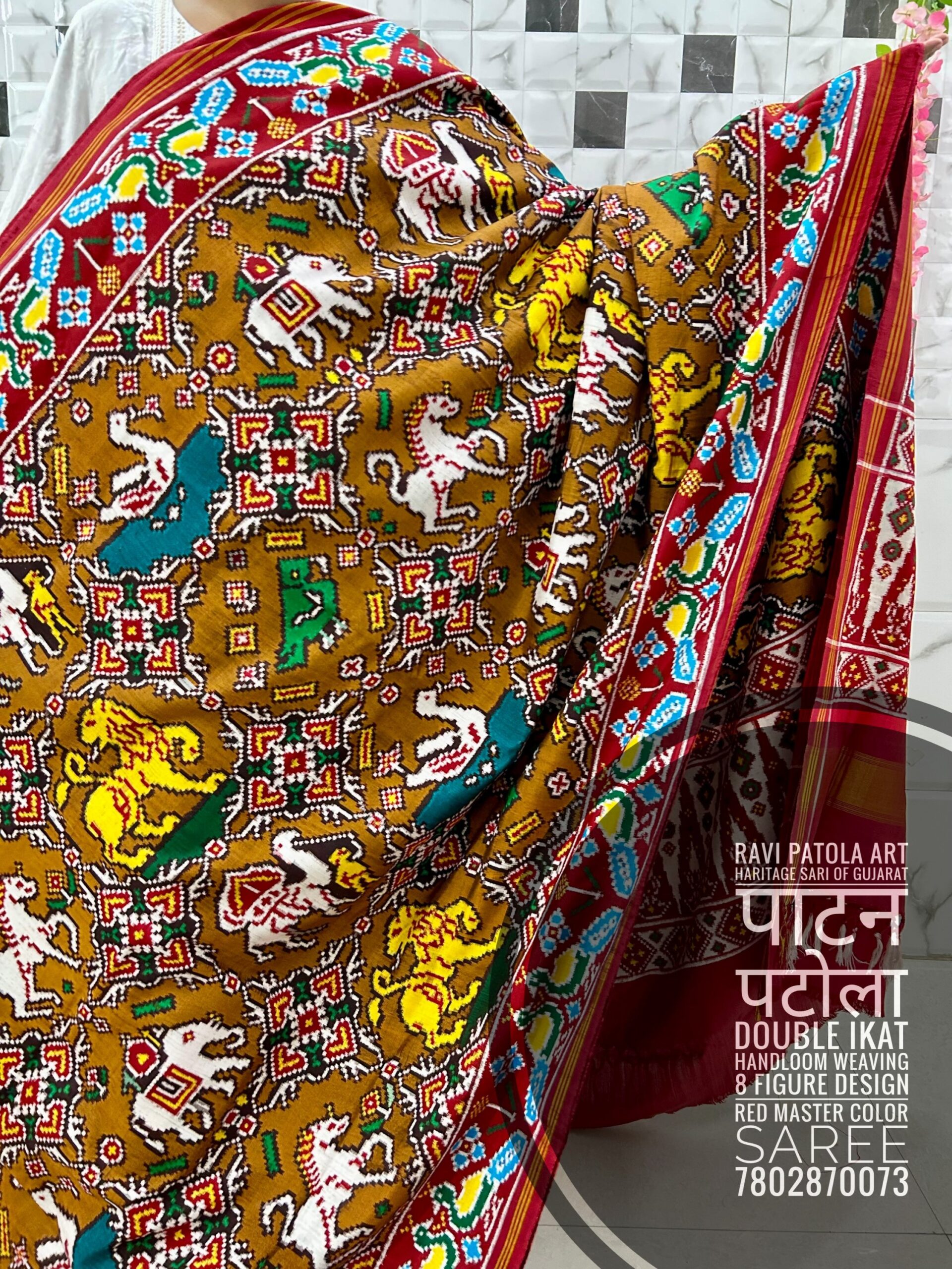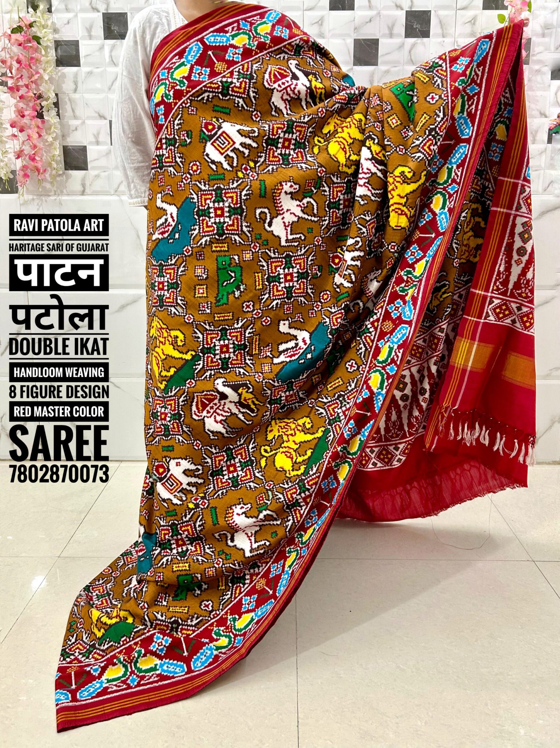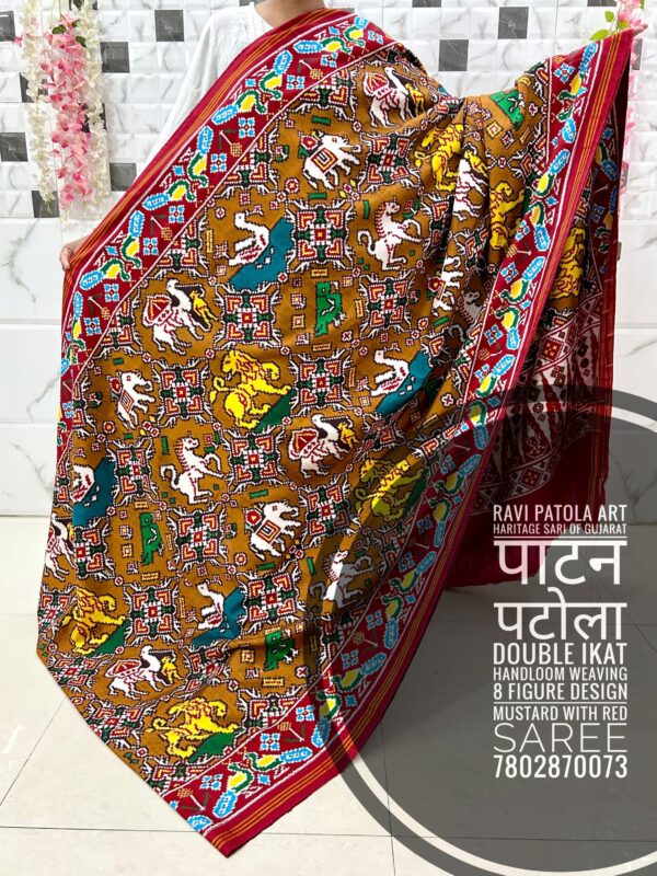 8 Figure Design Red with Dark mustard colour combination ( Double ikat Handloom Weaving) Patan Patola Luxurious saree