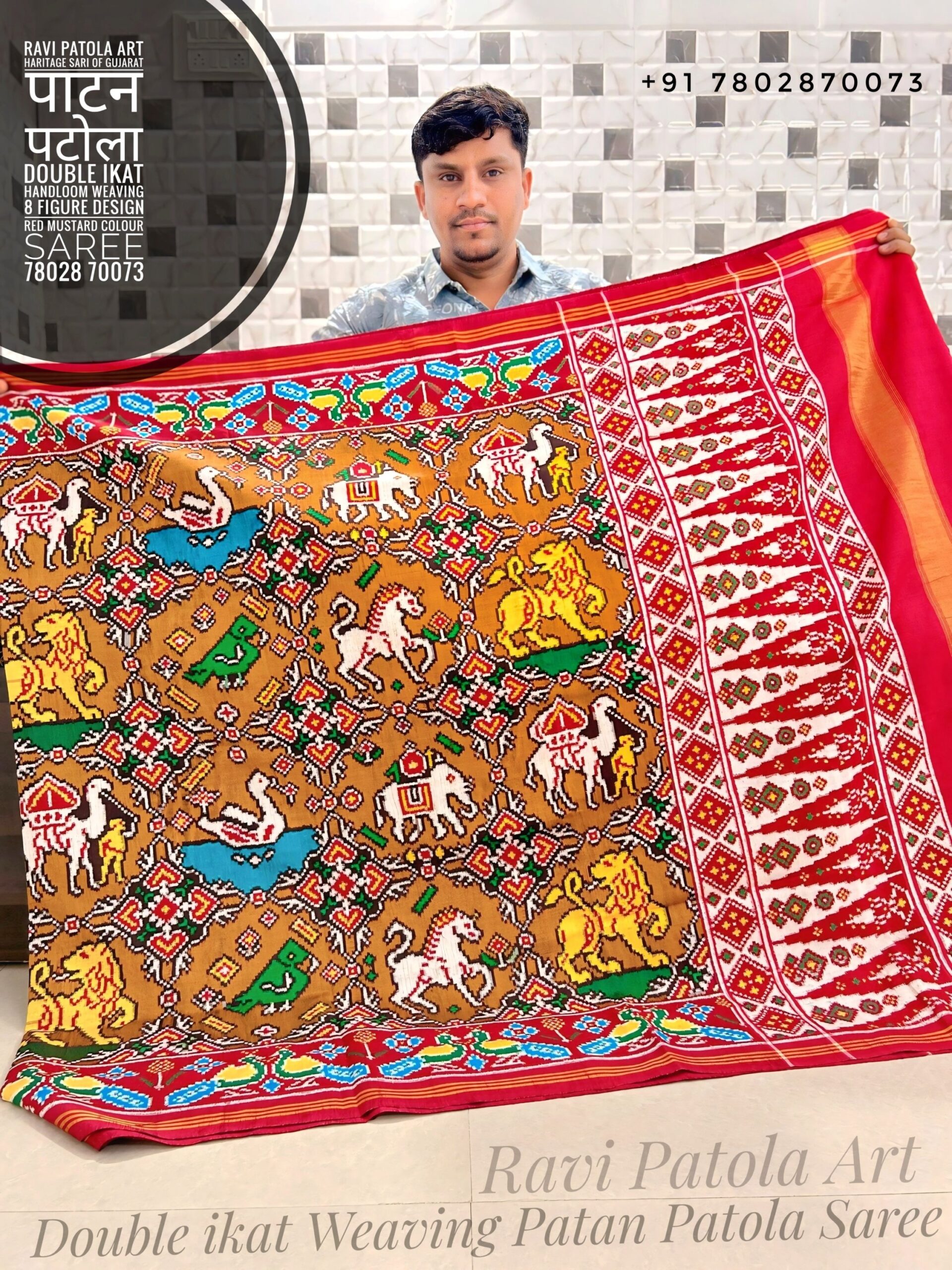 Be the first to review “8 Figure Design Red with Dark mustard colour combination ( Double ikat Handloom Weaving) Patan Patola Luxurious saree”