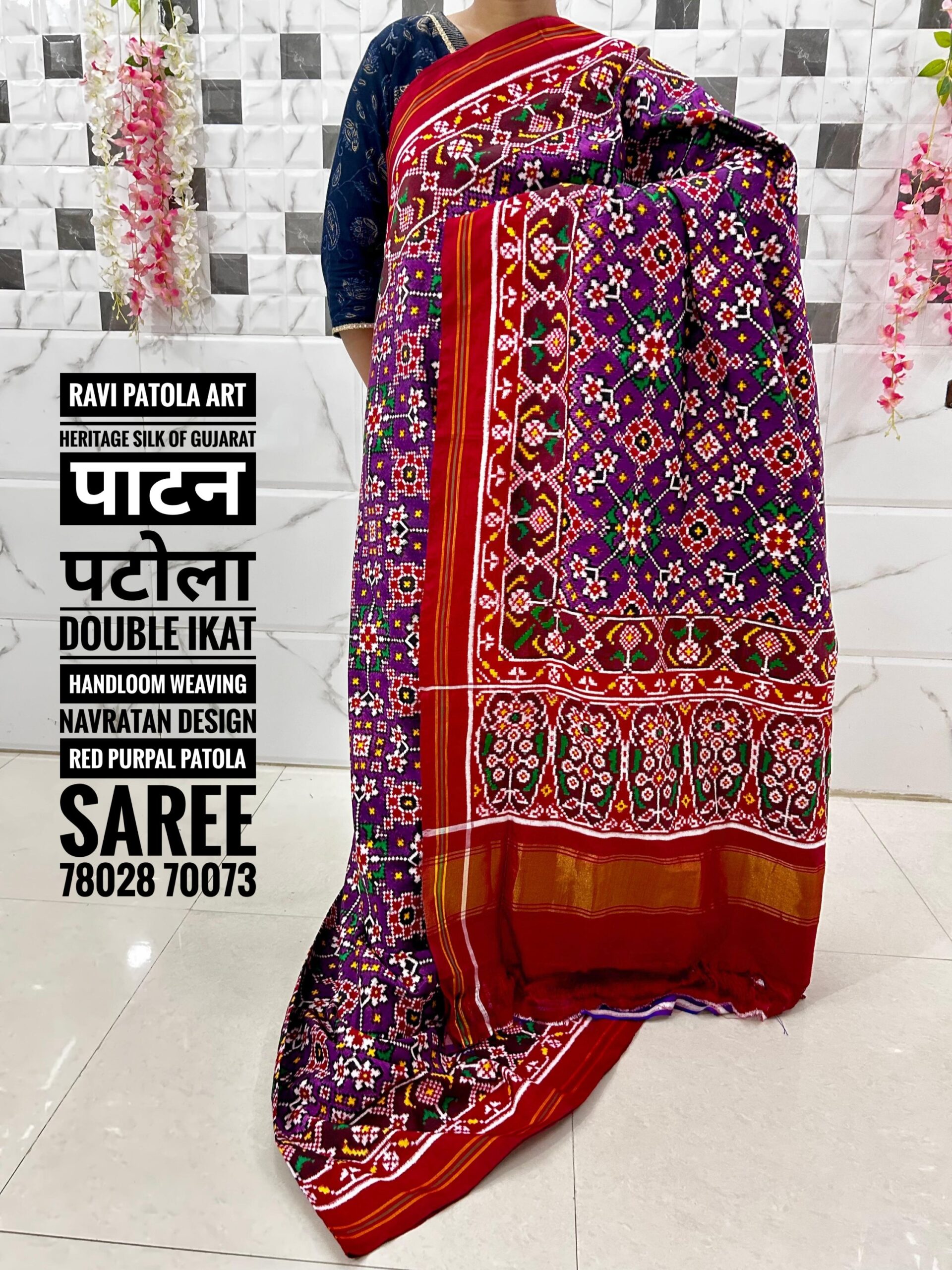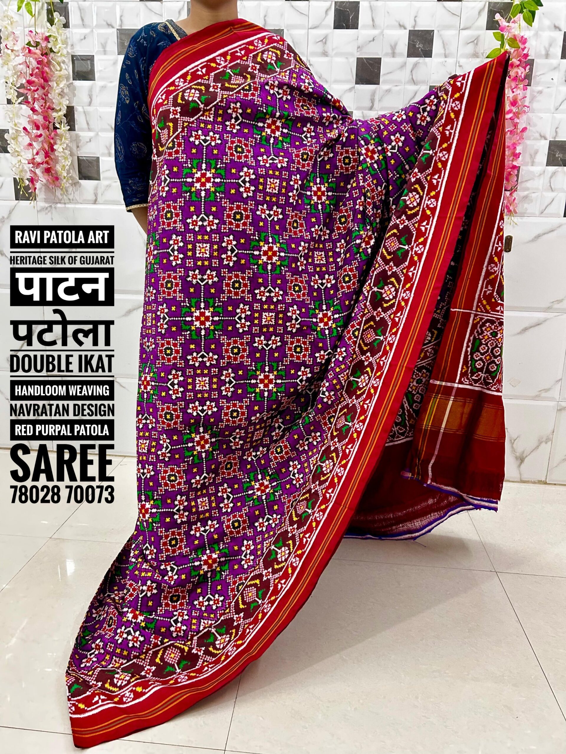 Be the first to review “Navratan Design Red Purple Double ikat Handloom Weaving Pure Patola Saree”