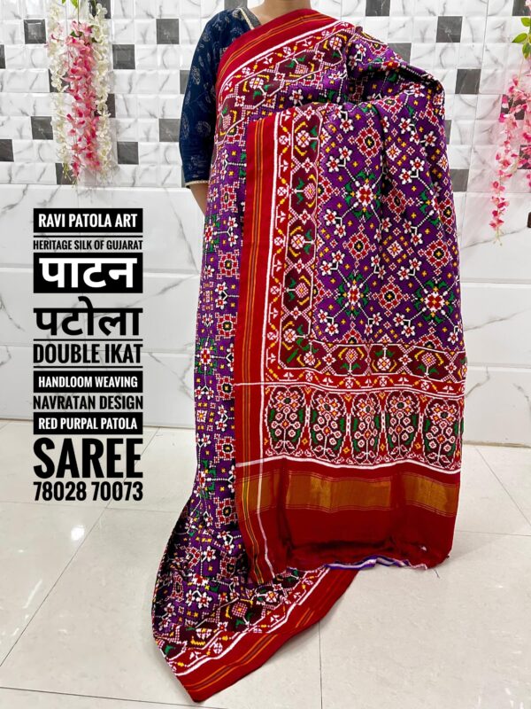 Navratan Design Red Purple Double ikat Handloom Weaving Pure Patola Saree