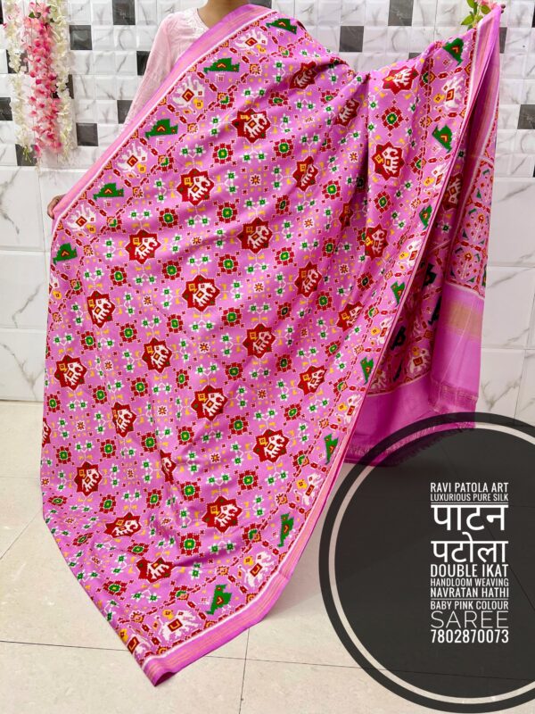Double ikat Patan Patola Saree Baby Pink Navratan Mix Elephant Design Pure Patola Saree