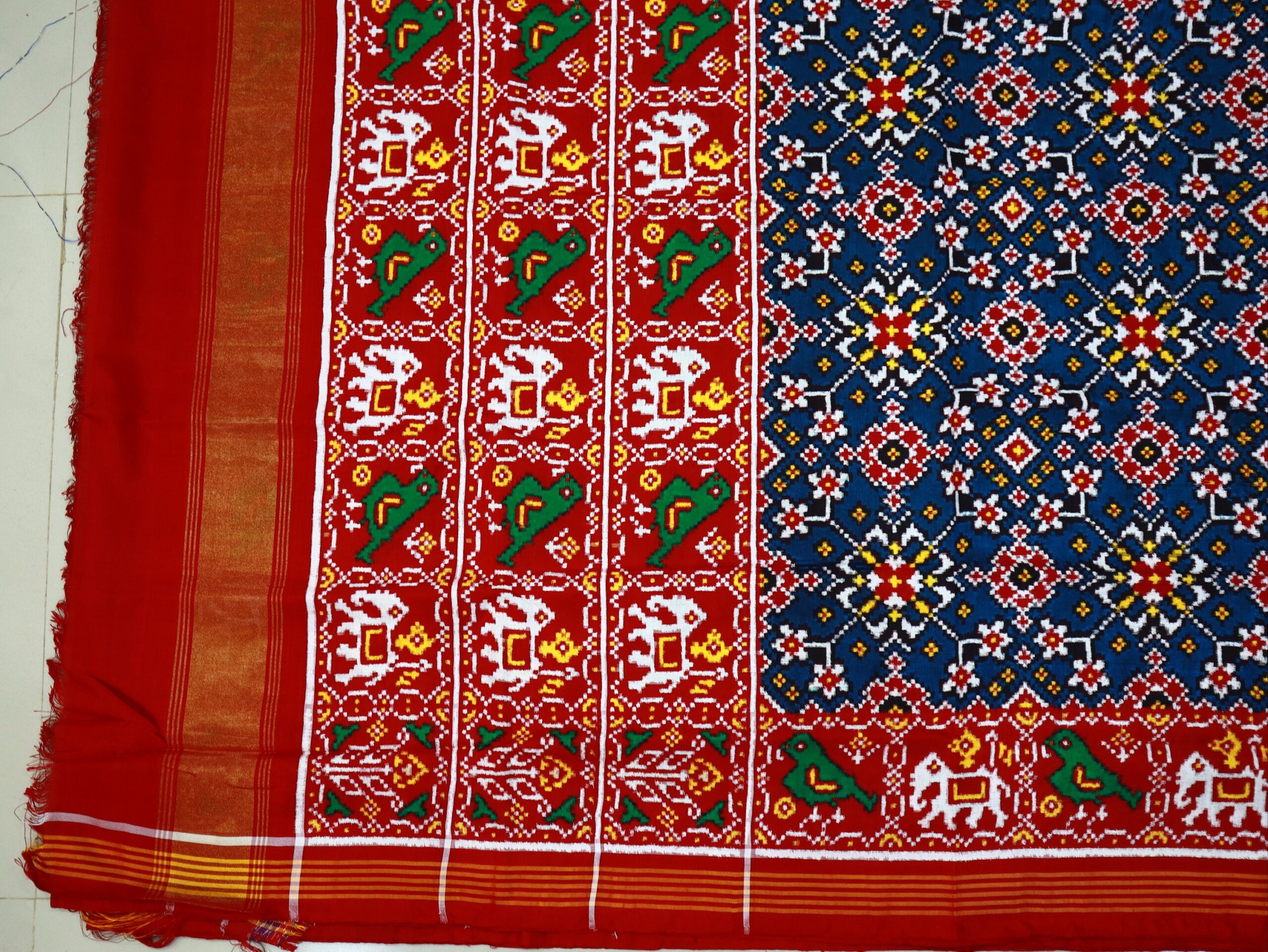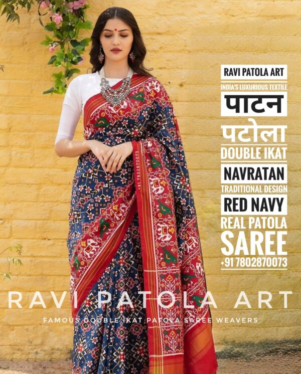 Saree : Double ikat Handloom Weaving Original Patan Patola Saree Gujarat